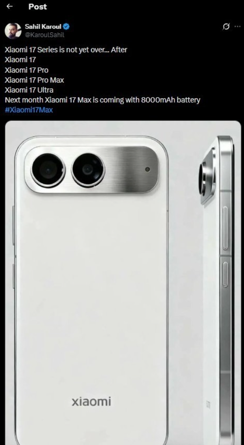4999元起?小米17 Max来了!更大屏幕+8000mAh大电池