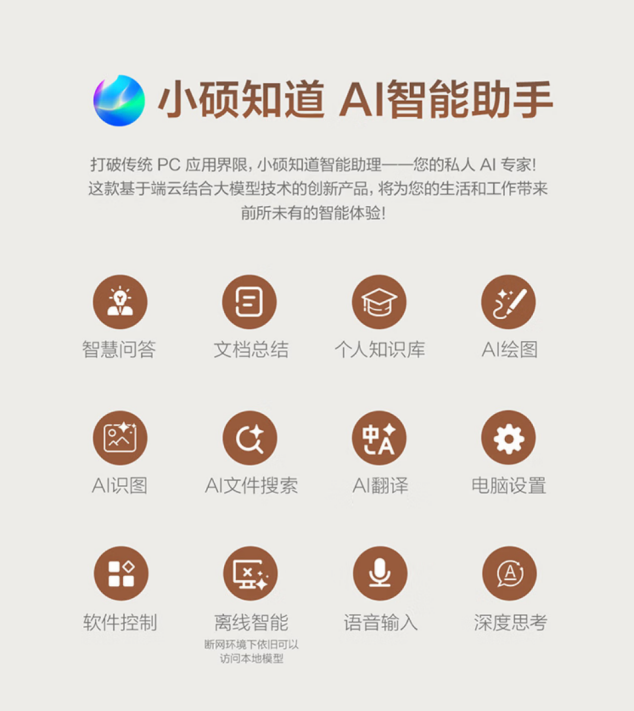 同时,华硕灵耀16 Air 2026还内置了“小硕知道”AI智能助手,基于端云一体AI大模型打造,断网也可正常使用,拥有智慧问答、文档总结、AI绘图、AI识图、AI文件搜索、AI翻译、电脑设置、软件控制等多个实用功能,撰写方案、查找资料、创意设计时都能全程辅助,有效减轻工作负担,让办公效率大幅提升。搭配StoryCube一站式工作智能媒体中心,可自动整合多设备、多平台的照片、视频与音频素材,省去手动分类整理的繁琐,查找和使用素材更便捷,为创作工作节省大量时间成本。