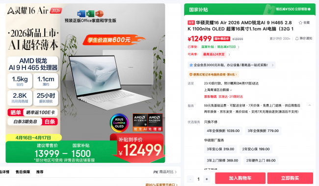 从轻薄便携的机身、持久稳定的性能,到离线可用的智慧AI、专业OLED华硕好屏,华硕灵耀16 Air 2026精准贴合职场精英与内容创作者的实际使用需求,给你更高效、更从容的移动办公新体验。目前这款AI超轻薄本正在京东商城热售,部分地区可享至高1500元国家补贴,上京东搜索#华硕灵耀16 Air 2026#,即可了解更多产品详情。