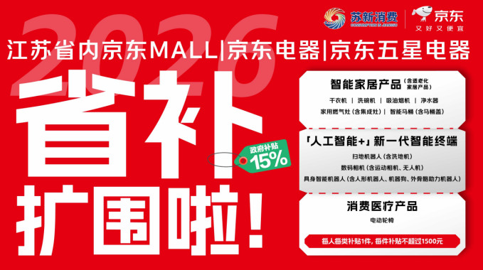 江苏省2026自主家电补贴政策来了,京东MALL、京东电器江苏门店率先开补