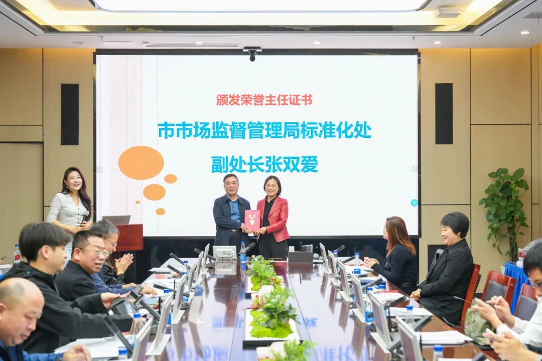 为持续深化广东省音频产业标准化体系建设,夯实粤港澳大湾区音频技术与产业协同发展的制度基础,会上,省音标委秘书长陆秀冰 宣读了《关于聘请原广东省标准化研究院院长张定康为省音标委荣誉主任的决定》。在热烈的掌声中,广州市市场监督管理局标准化处副处长张双爱为张定康先生颁发荣誉主任证书。