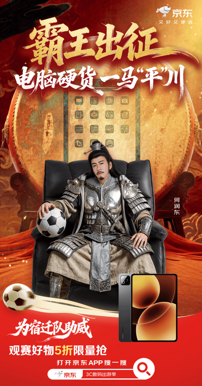 无论你是客厅霸主、深夜战士,还是移动追赛狂人,4月18日晚8点,上京东搜索“3C数码出游季”或“码上出征”,京东数码观赛好物限时5折起。快来与何润东一同为宿迁队加油,共赴这场足球狂欢盛宴。