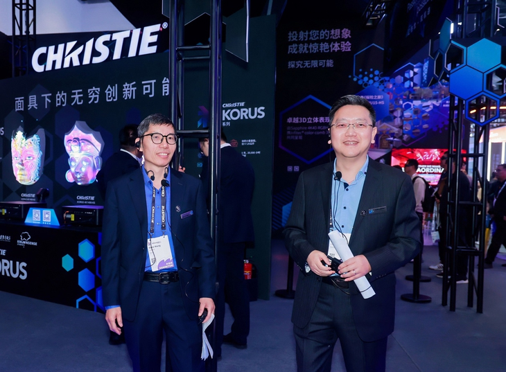 科视Christie中国区商用产品销售负责人王勇先生(左)和高级技术服务经理盛晓强先生(右)