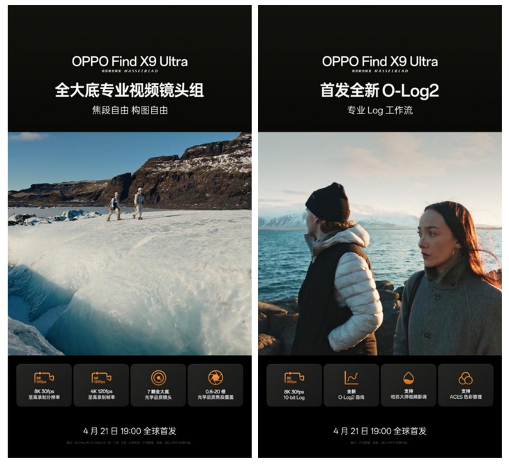 强大的视频创作实力,离不开旗舰级影像硬件的底层加持。OPPO Find X9 Ultra 搭载了哈苏 10 倍光变天眼长焦,并配合 2 亿像素超大底主摄、2 亿像素超大底长焦及第二代丹霞色彩还原镜头,以前所未有的全大底五摄光学系统,为卓越的视频表现提供了坚实的硬件保障。这让 Find X9 Ultra 不仅是能让哈苏专业影像底蕴被用户轻松装入口袋的「口袋哈苏」,更是一台能够随时随地投入专业视频工作的「口袋电影机」。全新 Find X9 Ultra 将于明日 19:00 正式全球发布,更多产品亮点与详细信息,敬请持续关注 OPPO 官方。