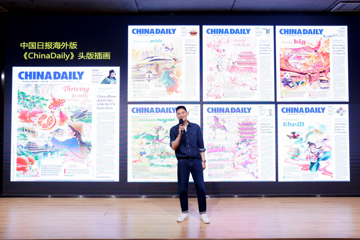 学长导师魏雪明通过“很喜欢见到插画的你”为主题,回顾了个人在插画领域的成长轨迹,并精心挑选了与央视新闻、中国日报等权威媒体携手合作的商业插画案例进行分享。他不仅为同学们提供了职业发展建议,还特别介绍了他的“插画好助手”——佳能加墨式高容量一体机G3800,阐述了其在插画创作与作品输出过程中的应用价值,学长导师魏雪明鼓励同学们将科技创新融入艺术创作,让作品真正“打出好前程”。