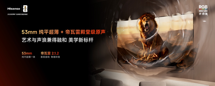 声学方面,海信联合帝瓦雷深度打造2.1.2声道影院级音响系统,165W超大峰值功率、3.7L大腔体搭配25W独立低音炮,实现60Hz低音下潜,结合专利指向性号角环绕音,带来全方位环绕的逼真音效,无需额外配备回音壁,即可享受影院级听觉体验。工业设计上,53mm旗舰级超薄一体机身搭配8mm极限贴墙设计,挂墙后宛如壁画,适配多种家装风格;此外,有源智能天线Wi-Fi 6的搭载,让网络接收灵敏度飙升84.3%,信号稳定性提升178%,彻底解决隔墙卡顿问题。
