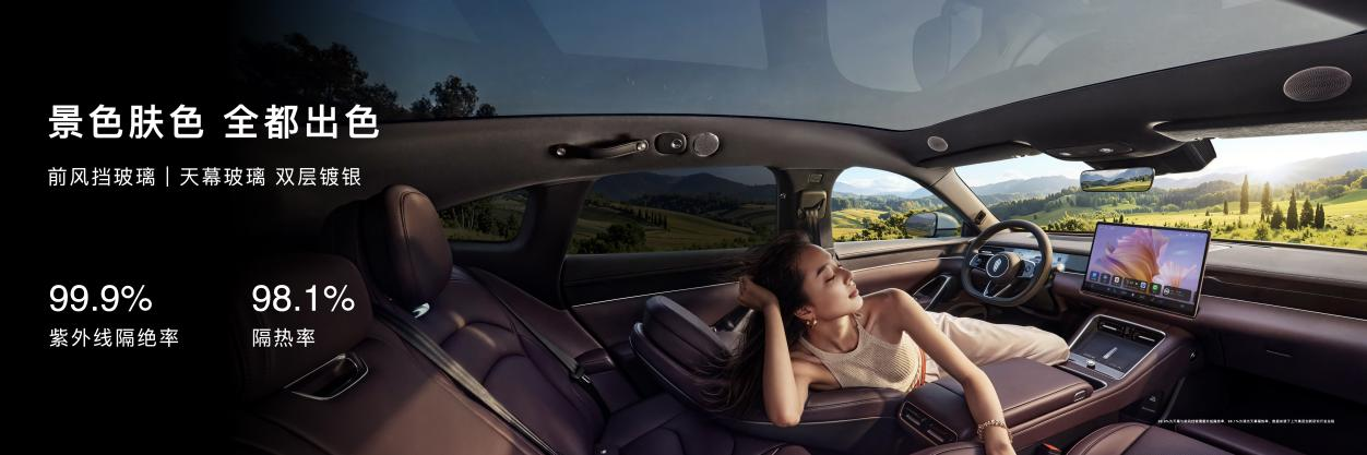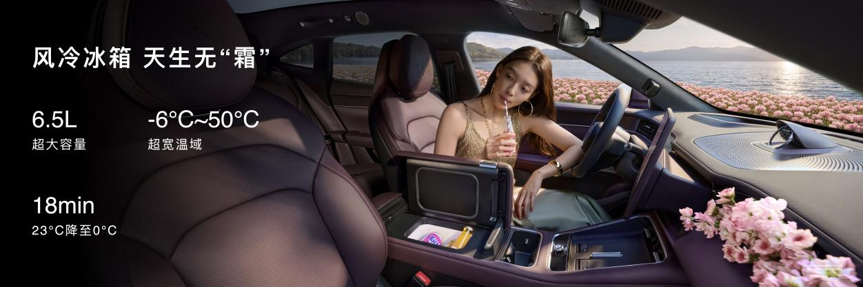 针对车内防晒,尚界Z7、Z7T前挡风玻璃、天幕均采用双层镀银玻璃,天幕可选装EC智能调光天幕,遮光率高达99.91%,紫外线隔绝率99.9%,隔热率98.1%;配合后门玻璃、后三角窗、后挡防晒隐私玻璃,车内无惧阳光直射,景色肤色,全都出色。6.5L超大容量风冷无霜冰箱支持-6℃~50℃超宽温域和快速制冷,保温、冰镇一机搞定,23℃到0℃只需要18分钟,将年轻人的精致感与仪式感融入每一段旅途。