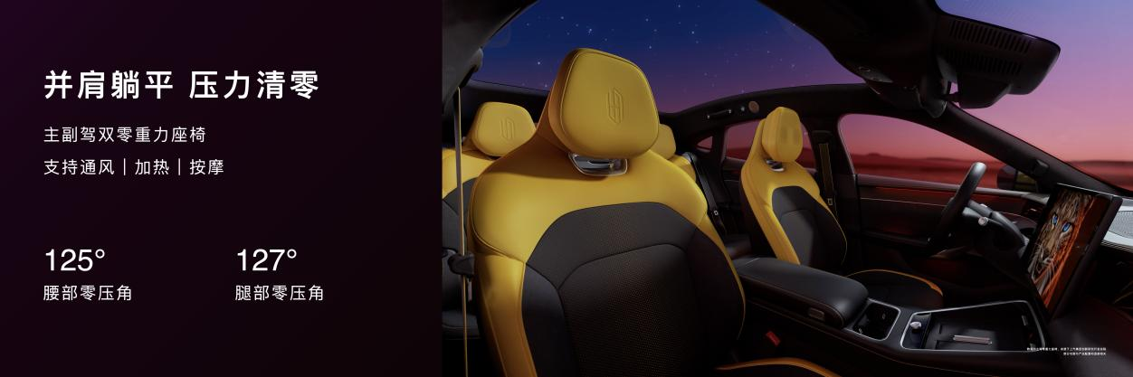 漂亮从未如此舒适。尚界Z7、Z7T为用户带来了主副驾双零重力座椅,加热、通风、按摩一应俱全。前排乘客可以并肩躺平,让压力一键清零。后排座椅同样支持靠背角度调节,最大躺倒角度123°,并标配加热、通风功能,向后一靠,舒适驾到。此外,全车共有143处声学材料应用,四门均采用双层静音夹胶玻璃,快意奔行,静享远行。21扬声器HUAWEI SOUND低音澎湃,高音震撼,配合超级桌面空间音频,精准还原动听声音。