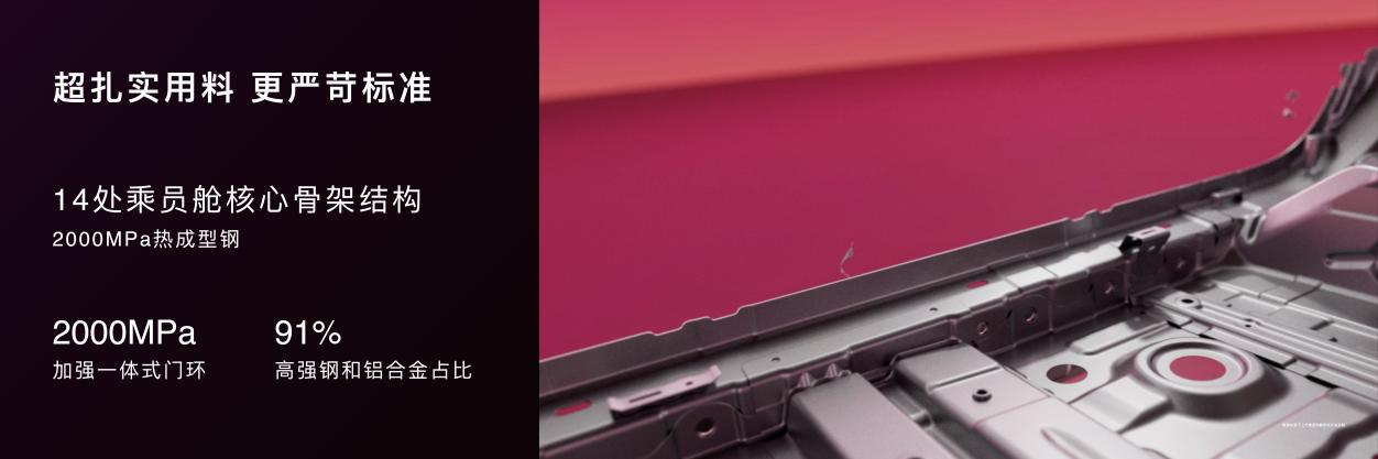 漂亮从未如此安全,尚界始终践行鸿蒙智行“安全是最大的豪华”。尚界Z7、Z7T采用十三横五纵硬核车身架构,超宽高强度铝合金双前防撞梁与高强度铝合金后防撞梁高效吸能缓冲,打造移动安全堡垒。超扎实用料,更严苛标准,高强钢与铝合金占比高达91%,14处乘员舱核心骨架结构采用2000MPa潜艇级热成型钢,整车具备5.8倍车重车顶抗压能力,为用户提供硬核安全守护。