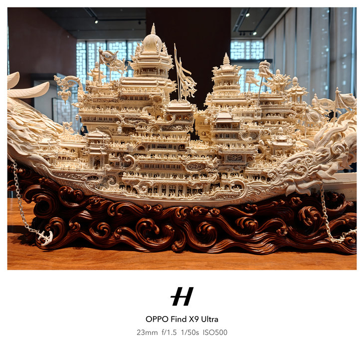 另外,哈苏超清模式是主摄的核心加分项,开启2亿像素超清拍摄后,拍摄结构复杂的工艺品等这样细节丰富的画面,放大数倍后画面依旧锐利、纹理清晰,细节保留完整。