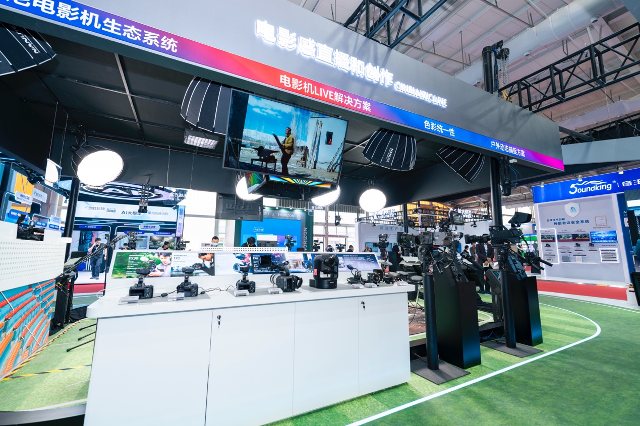 其中,3CMOS精准色彩还原、大倍率伺服变焦、大景深拍摄、电影感色彩科学混合使用、无级ND滤镜等传统核心优势,均在此展示区实现强化呈现与沉浸式体验,让客户近距离感受设备的专业实力。