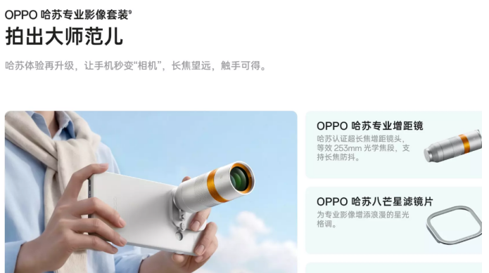 * 哈苏双2亿像素主摄+潜望长焦:无论是记录旅途中壮丽的风景,还是拍摄演唱会上的偶像,都能获得超清画质。配合哈苏专业增距镜(需另购套装 1299元),更能实现253mm(11X)的远摄能力,堪称“口袋演唱会神器”。