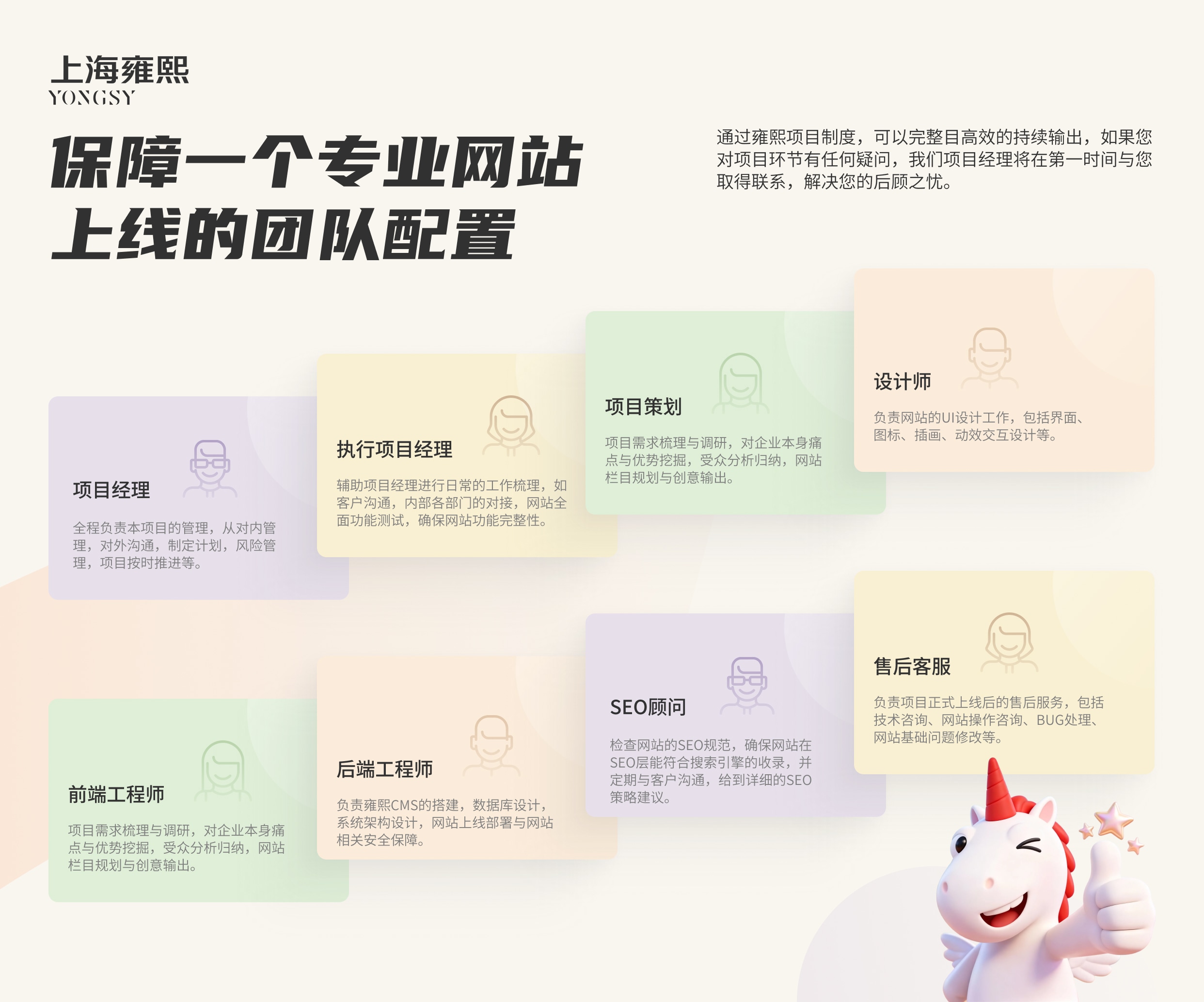 行业深度沉淀,全场景解决方案成熟雍熙针对不同行业打造标准化 + 定制化结合的服务体系,覆盖新能源、制造业、芯片半导体、生物医药、软件物联网、学校教育、集团控股、品牌出海等八大核心领域,每个领域均有成熟的业务逻辑、页面架构、营销转化思路,避免 “通用化模板” 适配专业行业的尴尬,真正做到懂行业、懂业务、懂客户。