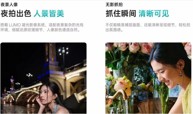 * 第二代丹霞色彩还原镜头:色彩还原更真实、更出片。它通过多光谱传感器协同计算,能精准还原复杂光线下的色彩,无论是办公室的暖光、咖啡馆的昏暗氛围还是户外的自然光,都能呈现出真实且有质感的色彩,让照片直出就很有味道。