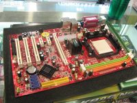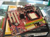 如今690G、MPC68等整合主板在市场上称霸一方,C61曾经的辉煌已经不在。但市场上仍然还有C61的部分产品。微星一款C61芯片的主板,目前的价格499元。 主板全貌 采用NVIDIA NF61000+405(MCP61S)芯片组,支持全系列的AMD AM2 Athlon/Sempron处理器,支持1GHz (2000MT/s)HyperTransport总线技术,内建GF6100