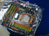 近日,笔者在市场上看到富士康一款采用570 Ultra单芯片设计的主板,这款主板从用料和做工上看体现了富士康一贯的风格。这款主板从刚上市时的1000多元降到了现在的899元。 主板全貌 主板采用NVIDIA NF 570 Ultra单芯片设计。采用AM2 940接口,支持AM2 940系列处理器,前端总线为1000MHz。 供电系统和内存插槽 主板采用3相供电设计。提供