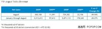 [泡泡网主板频道9月4日]威盛科技于9月2日发表八月份销售成绩:2009年8月新台币净销售额3亿6511万新台币,约合1109万美元。 该销售成绩相比7月下降了11.38%%,今年7月份销售额为4亿1201万新台币,约合美元1252万美元。■