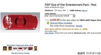 SCEA将于2008年6月3日正式发布PSP限量版《战神:奥林匹斯之链》套装,目前美国Amazon网站开始接受预定,售价为199.99美元,折合人民币约1400元。6月3日正式发布,不知道会不会提前偷跑 套装包含一台深红色PSP2000主机(背面印有奎爷的头像)、一张《战神:奥林匹斯之链》游戏盘,一张UMD格式的《太坏了》(Superbad)电影以及《虹吸战士:掌上搏击》认证证书,拥