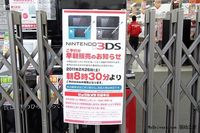 任天堂裸眼3DS掌机26日正式在日本上市,香港游戏网站GameWave率先拿到了3DS,并给出了开箱视频以及《山脊赛车3D》、《超级街霸4 3D》游戏运行视频。 3DS在日本零售店正式开卖时间为今天早上8:30,日本玩家早早在各大零售店排队等候购买。 3DS在日本的售价为25000日元,它还将在3月25、27日分别在欧洲和美国上市。 下面是3DS日本上市情