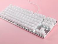 黑色与白色的搭配永远是一个经典的组合,黑色与白色交织在一起是一种简单的美,很个性、也很潮流。而在潮流担当的今天,各种颜色、各种款式的机械键盘,游戏鼠标应育而生,洁白的机械键盘&黑色的游戏鼠标作为经典搭配,为你的桌面增加了一道经典潮流的韵味。老牌实力大厂,国产外设领军品牌雷柏(RAPOO)为旗下专业游戏外设品牌VPRO新近打造的雷柏V500S冰晶版背光游戏机械键盘,银白色的铝合金上盖,冰晶玉洁般