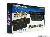 【泡泡网键盘鼠标摄像头频道】在对传统的键盘有些司空见惯,当这款新贵“小魔指”KB-806键盘出现在我们眼前时,绝对能够令人眼前一亮。虽然市面上迷你键盘并不少见,但新贵“小魔指”可以说是附加功能丰富,很有特色,比较出众的一款迷你键盘。 外包装 新贵“小魔指”键盘的外观,主体黑色,类似明基“海贝”键盘的弧形键面设计,并有多达24个快捷键,还设计有滚轮,便于用户进行文档或网页的浏览滚屏。