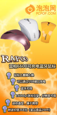 彭辉 · 2009-11-30 04:00 - 可换3色外壳可充电 雷柏6600蓝牙鼠标