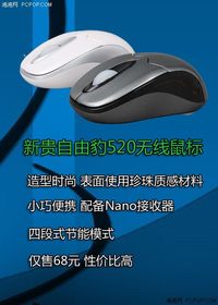 泡泡网鼠标键盘频道3月4日 作为一家专业的键鼠产品生产厂商,新贵始终坚持技术革新,推动整个行业向前发展,推出过水晶鼠标、“宫柱”结构键盘等经典产品,并以精美、时尚的外观设计和高性价比赢得了消费者的好评。 在步入2010年后,新贵推出了一款自由豹520无线鼠标,这款鼠标表面使用了具有珍珠质感的材料,触感光滑细腻,而且具有很好的视觉效果。自由豹520采用2.4