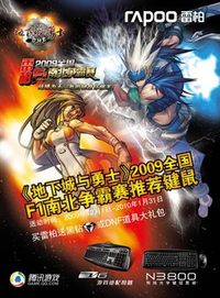 由腾讯游戏与雷柏电子联合举办的“地下城与勇士2009全国F1南北争霸赛”正进行得如火如荼,全国各地的DNF高手们在赛场上的精彩对决不仅让广大DNF迷们欣赏到高水平的格斗比赛,还能从中学习和领悟到适合自己的玩法,为游戏增添了更多的乐趣。作为活动主办方,腾讯游戏与雷柏电子强强联手,不仅为本次的地下城与勇士2009全国F1南北争霸赛做足了宣传,而且雷柏还特别为参赛玩家们准备了价值百万的游戏奖品!