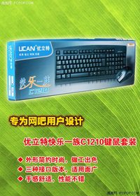 泡泡网鼠标键盘频道2月14日 UCAN优立特是深圳春光科技有限公司推出的一个键鼠品牌,意为优秀、独立、特别、你能,他们坚持技术、质量和创新的理念,致力于为消费者提供喜闻乐见的电脑技术产品,享受到科技带来的新生活。 在上班的头一天,我们就收到了优立特送测的C1210快乐一族键鼠套装,从官网的介绍来看,这是一款专为网吧用户设计的键鼠套装,在手感、耐用等方面有着突出的表现。