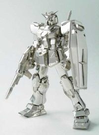 【泡泡网键盘鼠标频道】就是下面照片中看似普通的高达模型,BANDAI出品,标价25万美元。 日本BANDAI将在下月的BASELWORLD(巴塞尔世界)珠宝和钟表展上展示这个高为5英寸,约合127mm的高达模型,该模型由1,400克白金制成,双眼为两颗钻石,这就不难解释它为何有25万美元高价了。