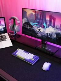一面是赛博朋克风的电竞既视感,一面是粉嫩温柔风的暖色调,恰到好处地碰撞融合,回应着每一刻陪伴的日子,同行同频,生活才有了光。雷柏无线外设桌搭围绕桌面作为载体,在日常中释爱,在浪漫中沉沦,伴你岁岁年年。