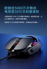 老牌实力大厂,国产外设领军品牌雷柏(RAPOO)发布的VT950电竞游戏鼠标,拥有1680万色双区域RGB灯光系统,客制化的OLED显示屏,随时知悉战鼠的一举一动。搭载P3389的专业传感器,可在50-16000DPI中以50DPI为单位逐级微调,5000万次的清脆手感微动开关,性能和手感得到极大提升;配备的1颗10克重的可拆卸配重块,0能够适当调整鼠标的重心和重量。板载内存、编织线材、镀金USB接口、特氟龙材质脚垫,优秀的工业设计与表面材质保证了长时间游戏的舒适度。仅售399元,相信它一定会成为你首选的游戏利器,给你畅快的游戏操作体验。