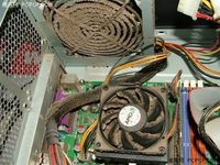 泡泡网散热器频道7月7日 近日上海电网的用电负荷也创下今年以来的新高......家住浦东的何先生发现家里一台台式电脑不仅是“电老虎“,而且使用时噪音很大,用手一摸机箱外壳竟很烫。何先生拆开机箱后发现,机箱内的两只风扇上积满了厚厚的灰尘,并且已经积成了絮状物。“风扇是用来给主机散热的,积满灰尘效果就差了,而且转动时很费力。”何先生说,他家的电脑用了4年多,从来没拆开过,这次经他清理后,电脑巨