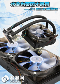 泡泡网散热器频道8月7日 量才施用是指不同的人才应该根据他的特长与兴趣去决定他的岗位,这样可以起到事半功倍的作用,反之依然。这个词不光对人适用,对于物件来说也是如此,用钛合金做锄头拿柳絮做棉被都是不合适的。对于DIY散热行业来说也一样,散热器不一定有多豪华当然也不能太节约,总归就是一个词——务实。 提起水冷大多数朋友可能第一个反映就是豪华奢侈,是高端DIY的象征。其实水冷散热