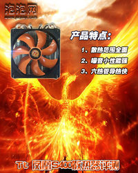 泡泡网散热器频道4月29日 知名国际机箱电源散热器品牌thermaltake曾经推出了一个樱花精灵系列散热器,该系列散热器用料足设计精细,散热性能不俗,而且采用了Tt在美国CES展会上展出的专利樱花风扇主动散热,一度成为市场中的热门散热器产品。今年他们再度出击推出了凤凰系列散热器。 相关评测:《听不到噪音!Tt六热管新品散热器战i7》 凤凰S400散热器