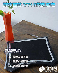 泡泡网散热器频道4月30日 酷冷至尊作为知名外设制造商,今年推出了不少产品,让人目不暇接。年初挑战者、特警310等数款机箱纷纷上市而且好评如潮,近期他们在散热器上频频发力尤其是笔记本散热器,已经上市的有U2、和尊睿系列等多款产品,今天给大家介绍的依然是酷冷至尊尊睿系列笔记本散热器——V710。 尊睿V710 近期酷冷在笔记本散热器上的推举力度很大,而且每一款都给大家带来
