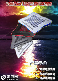 泡泡网散热器频道4月24日 笔记本散热器的作用是什么?也许有人会疑惑“都说了是笔记本散热器那不就是给笔记本散热么”。经常关注笔记本电脑市场的朋友也许会发现,现在笔记本品牌之间的竞争虽然还是以配置和性能为重点,但是比重已经大幅下降,推广产品时候的配置已经不再居于首位,更多在讲体验,所以现在用户也在从性能、感受、外观等全方位衡量,笔记本电脑如此作为附属产品的散热底座更是遵循这种规律,所以一