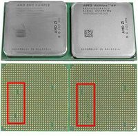 从今年5月正式上市以来,AMD AM2接口处理器凭借丰富的主板支持、和比较合理的价格逐渐接替939接口成为市场上的主流。尽管AMD AM2接口的处理器目前发热量都不大,盒装散热器就可以满足散热需要,但如果超频的话,则就力不从心了,因此,选择一款性能更好地散热器还是非常有必要的! 左侧为AM2接口处理器、右侧为Socket 939处理器 和Intel最新一代的酷睿2处理器相比,AMD的