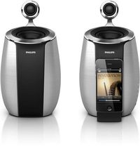 泡泡网音频频道8月9日 每当苹果发布一款新品时,全世界都会为之一振。伴随着苹果的风靡也带动着其周边产品的火爆,其中,围绕苹果产品而出现的外部音响设备就不胜枚举。而拥有iMAC、iBOOK、iPhone、iPod、iTouch等众多苹果产品的超级“果粉”们,真正需要的似乎是一位全能型选手——苹果音箱,来完美地诠释“苹果”得天独厚的音质。近日上市的飞利浦DS系列苹果音箱就是其代表之作。无缝化对