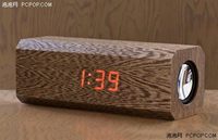 泡泡网音频频道1月8日 木质音箱我们不常见,市场上买到的大多数木质音箱几乎都经过了加工处理,表面不是烤漆面就是PVC贴皮,让它失去了原有的魅力。而最近就出现了这么一款小音箱,它保持着木质材料原有的味道,而且在音箱的功能上还增加了适中功能,居家味道很浓。 木质小音箱 带时钟功能 这款音箱最奇妙的就是通电后,在音箱的表面会很神奇的显现出时钟,其原理无人知晓。音箱的两侧是
