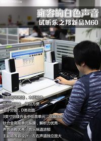泡泡网音箱频道9月29日 你喜欢白色吗?在现实的生活中,我们总是能够见到很多的白色控。白色总是能够带给人一种纯净的感觉,就像当年的苹果找到了那种滑润如凝脂般的白色,才让苹果有了一种超凡脱俗的味道。今天我们要带给大家的这款音箱,同样也是拥有纯白色的外观,这就是乐之邦最新推出的2.0音箱Master至尊系列新品M60。 乐之邦M60试听报告 其实这款音箱来到我们编辑部已经有