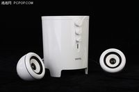 泡泡网音箱频道8月25日 白色代表着圣洁,也是纯洁的象征。白色和黑色是永不过时的色彩,永远走在时尚潮流的尖端,这两种颜色搭配起来,可以充分体现出大气的特征。明基Y280天籁音箱就采用了这样的配色,以白色为主背景色,加以黑色的音箱单元作为点缀,缔造永久的流行。球形和筒状被良好的结合了,看起来圆润富有光泽,小编带大家近距离了解下明基这款2.1有源音箱Y280天籁。 明基Y280天籁