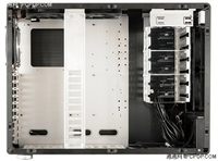 泡泡网机箱频道6月26日 最近的小火车是大家关注的绝对焦点,而联力同期发布的V750似乎没有它那么风光,但这也依旧是一款极具创新的机箱,仅仅440mm高度的E-ATX规格意味着V750需要改变现有塔式机箱的结构才能实现。从内部来看,这款机箱很有亮点,它仅仅配置了一个5.25寸光驱位,而6个硬盘位则是常见的塔式机箱兼容能力,其余的五寸位用来干什么了呢?看到驱动仓底部就知道了,和A05FN一样