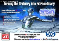 这款机箱是国外的一位玩家应蓝宝之约,为其特意制作的。曾经蓝宝想要利用这款改造机箱,在已经过去的E3上展示它们的采用了最新的冷却技术,散热效果与水冷相当的显卡——Liquid Metal Cooled Radeon X850XT。 蓝宝的宣传海报,上面写着“将平凡变为不凡”。 蓝宝的宣传机箱,自然要用蓝宝的主板,而最新的“PURE”系列是不二之选。 相信蓝宝特约的作品