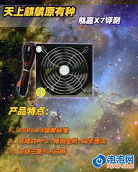 泡泡网机箱电源频道2009年11月30日 08年-09年之间多家台系电源品牌进入国内市场,长城航嘉等名字已经不是首选的品牌了,航嘉也在积极准备弹药筹划反击,今年下半年推出了X7。这款900瓦的80PLUS银牌电源如今已经可以在市场中买到了,官方报价997元。今天评测的主角就是它。 航嘉X7 电源包装 航嘉X7电源 散热孔也发亮 大风车散热方式