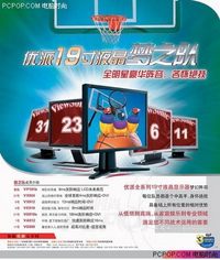 [LCD.PCPOP.COM 4月30日讯]:显示器行业巨头优派今年春季频频出手,不仅将高端19英寸VP系列VP191专业级液晶降至4000元以内,随后又低价推出VG900的升级换代机型VG910s。在4月初兼顾高中低端的19英寸全明星阵容整体出击,给大屏幕液晶显示器市场注入了一针强心剂。 在4月20日——4月30日期间,优派再度专门为这一19英寸液晶全明星阵容,推出了“优派绝版鸟娃