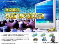 [LCD.PCPOP.COM 6月13日讯]:飞利浦前不久刚刚将19英寸液晶190S5降至2999元价位后,带动起一线液晶大屏幕显示器的市场热卖。作为飞利浦高端19英寸液晶的代表,190P5也已降至3999元价位。近日,我们在飞利浦官方网站上看到,飞利浦正对此款液晶开展“夏日炎炎飞利浦190P5追风行动”网络特卖促销活动。 活动海报 活动的具体内容是:从6月10日至7月10日期间,凡