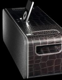 许多有钱人或者没钱但想要露富的人喜欢穿裘皮大衣,将猛兽的皮毛穿戴在身上能满足我们的虚荣心。iPod的外观特点是温柔雅致,但Dunhill日前推出一款音箱,其表面竟然采用的是鳄鱼皮材质! Dunhill公司以生产奢侈品闻名,据笔者所知他们还曾经出过高档西装。不过虽然此物外表蒙皮高档豪华,内部其实就是苹果iPod hifi。所以说付出这么多金钱就是为了外表那层薄薄的皮,如果你钱多的烫手可以选择