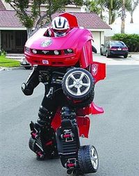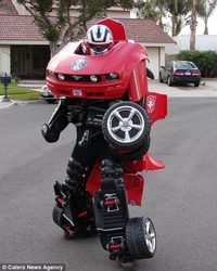 泡泡网资讯频道3月28日 变形金刚的粉丝遍布全球,能变身擎天柱几乎是每一位“钢丝”的梦想。最近美国加利福尼亚州的“钢丝”德鲁?贝昂米尔就用儿童玩具为自己打造了一套功能健全的“汽车人”套装,借助这套装束,这位发明家终于达成梦想,变成了现实版变形金刚。 这套服装是他花了8周时间,利用初学者工具箱、从超市买来的胶水、零件和一辆二手玩具四驱赛车(Power Wheels) ,在自家车
