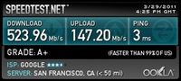Google的网速有多快?专门刊登Google及其相关产品消息的谷奥网站为我们提供了以下答案: 该网站写道,想找人 PK 一下网速?去找 Google 吧...三名 Google Chrome 团队成员在 Reddit 回答问题时为了满足大家的好奇心show 了一把 Google 的网速,如下图,还没有被闪瞎的请举手! 可能你会觉得这种测速网站的结果不靠谱?没问题,